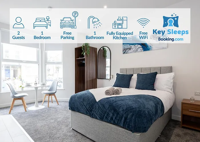 El Morecambe Bay Studio Flats Free Parking Beach Front cuenta con una zona de estar equipada con sofá y un escritorio y TV de pantalla plana con canales vía satélite. Las habitaciones disponen de detectores de humo. El apartamento incluye 1 dormitorio. Este establecimiento dispone de 1 cuarto de baño con inodoro y una ducha, así como secadores de pelo y toallas.